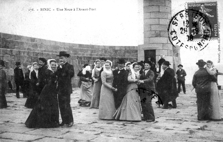 Bal de noces pour les époux Pierre Gauffeny et Louise Chapelet, sur la jetée de Penthièvre, au pied du phare, le 11 février 1903 (collection particulière)Immatriculation