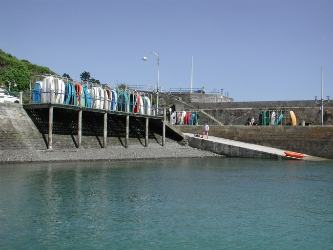 Vue de l'extrémité du quai Surcouf : remarquer le ponton aux annexes sur pilotis et la caleImmatriculation