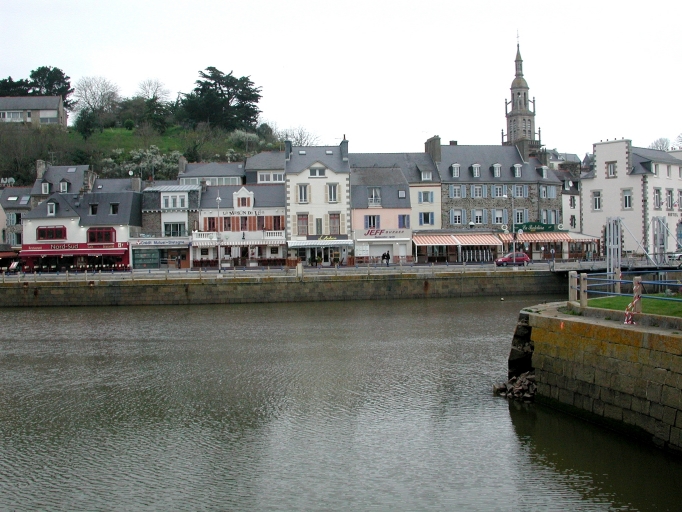 Le quai de Courcy et les commerces en front de port : remarquer la grande maison aux volets bleus de Le Saulnier de Saint-Jouan, armateur et ancien maire de BinicImmatriculation