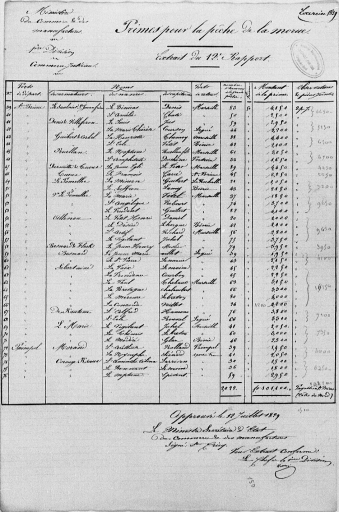Primes accordées pour la pêche de la morue aux armateurs de la baie de Saint-Brieuc et de Paimpol : extrait du 12ème rapport, 12 juillet 1829 (AD 22)Immatriculation