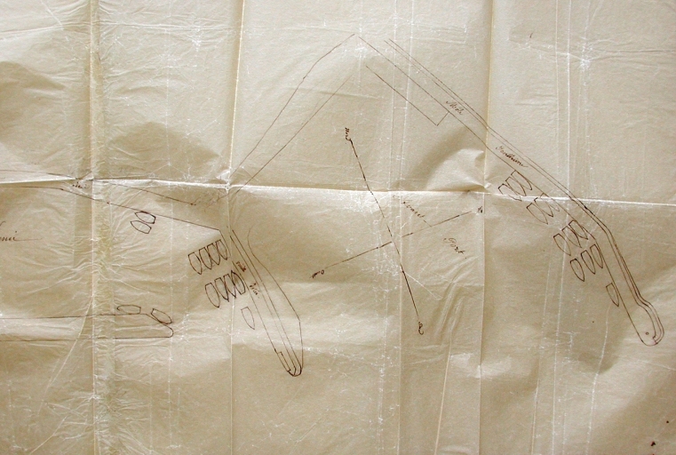 Plan calque : emplacement des navires au nord du môle (13), dans l'arrière port à qua et au sud de la vieille jetée, 1862 (AD 22)Immatriculation