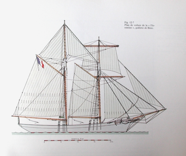 Dessin : plan de voilure de la goélette la Florentine de Binic (Jean Le Bot)Immatriculation