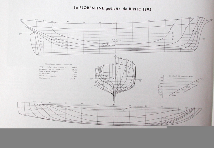 Dessin : plan de formes de la goélette la Florentine de Binic (Jean Le Bot)Immatriculation