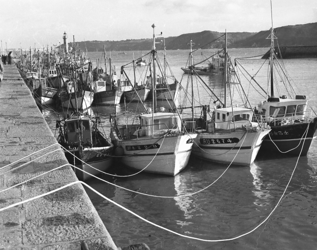 Les bateaux coquilliers originaires des ports de Bretagne sud à la jetée de Penthièvre vers 1970 (AD 22, Fonds Joël)Immatriculation