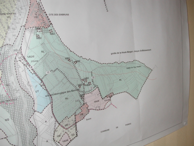 Extrait du cadastre moderne de Binic (PLU) : le site des falaises de la Banche et de la Houle Margot (Mairie de Binic)Immatriculation