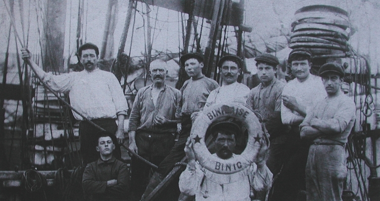 L'équipage de la goélette la Binicaise de l'armement Le Pomellec, fils (collection particulière)Immatriculation