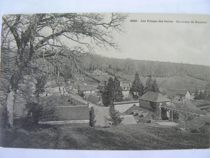 Carte postale présentant une vue des forges des Salles. AD Côtes-d'Armor 16 Fi 2826Immatriculation