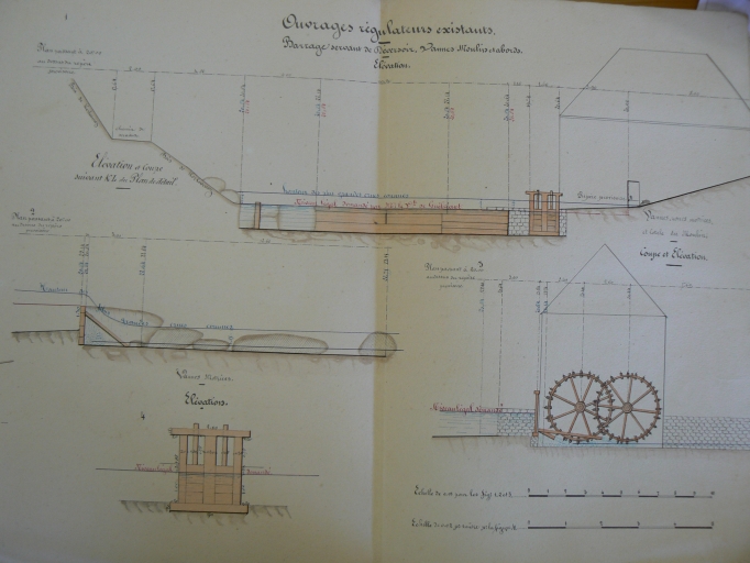 Détail de la roue et des ouvrages régulateurs fournis lors de la réglementation, 17 juin 1865. AD Côtes-d'Armor 84S5Immatriculation