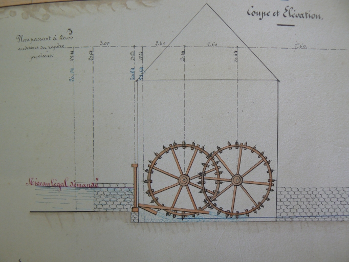 Détail des roues, fourni lors de la réglementation du moulin, 17 juin 1865. AD Côtes-d'Armor 84S5Immatriculation