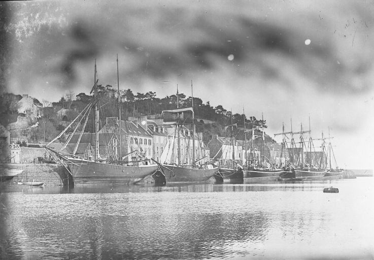 Les goélettes de grande pêche dans le bassin d'échouage (quai Jean-Bart), au début du 20ème siècle (AD 22, fonds Barat)Immatriculation