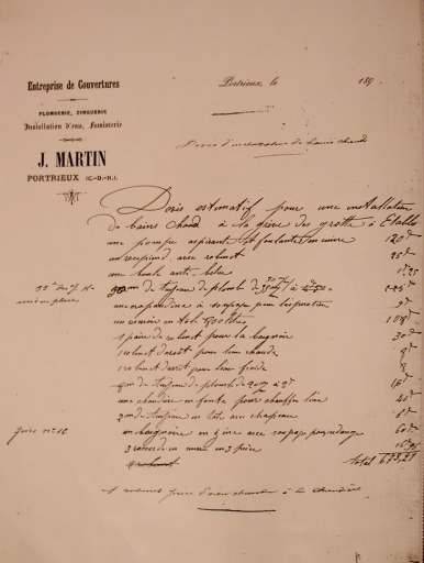 Devis pour l'installation de bains chauds à la plage des Godelins, 1898 (collection particulière)Immatriculation