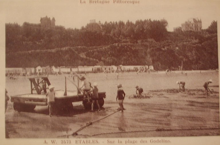 Les équipements de la plage des Godelins au début du 20ème siècle : le radeau mis en place en 1932 et les cabines de bains(collection particulière)Immatriculation