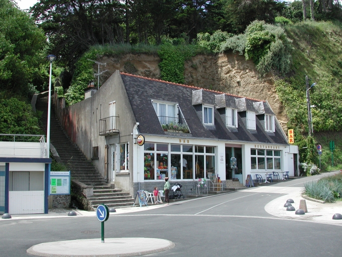 Au débouché du bd Legris : le commerce Jean Le gallais, construit en 1900 et refait en 1965, avec à côté l'escalier des Roches Brunes, à côté des anciens bains chaudsImmatriculation