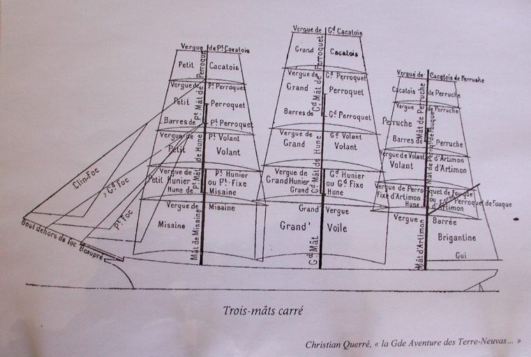 Dessin : trois-mâts carré (C. Querré)Immatriculation