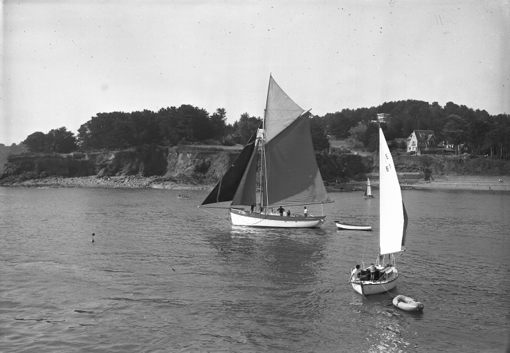 Le futur site départemental de Pors Es Leu, vers 1970 : remarquer le bateau traditionnel St-Guénolé, aujourd'hui classé MH qui navigue en harmonie avec le paysage (AD 22, Fonds Jouas Poutrel)Immatriculation