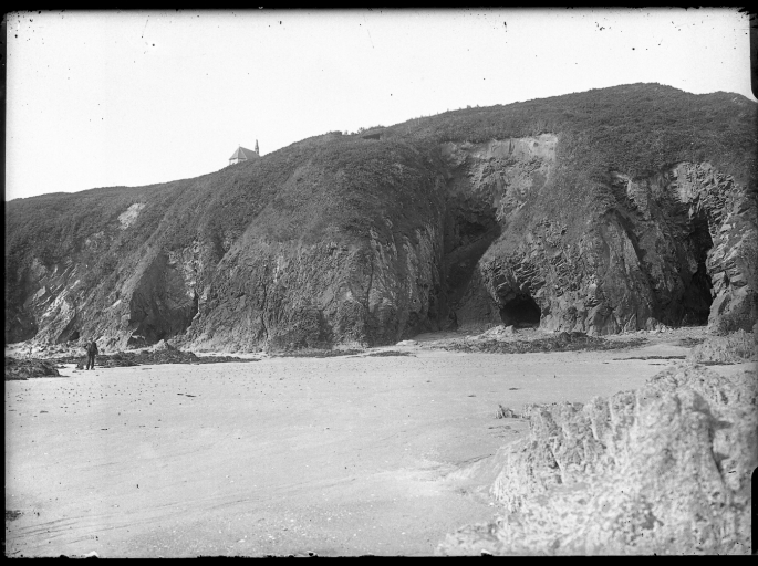 Vue de la chapelle sur la falaise, au-dessus des grottes (AD 22, Fonds Barat)Immatriculation