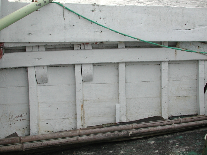 Vue en détail de la charpente (membrures franches et serre)Immatriculation