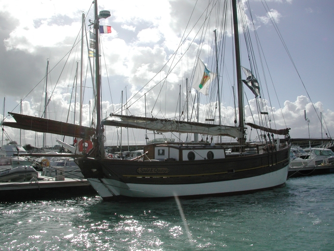 Le Saint-Quay, ex-Jeanne, coque entièrement pontée, gréée en ketch aurique (nouveau port de plaisance)Immatriculation