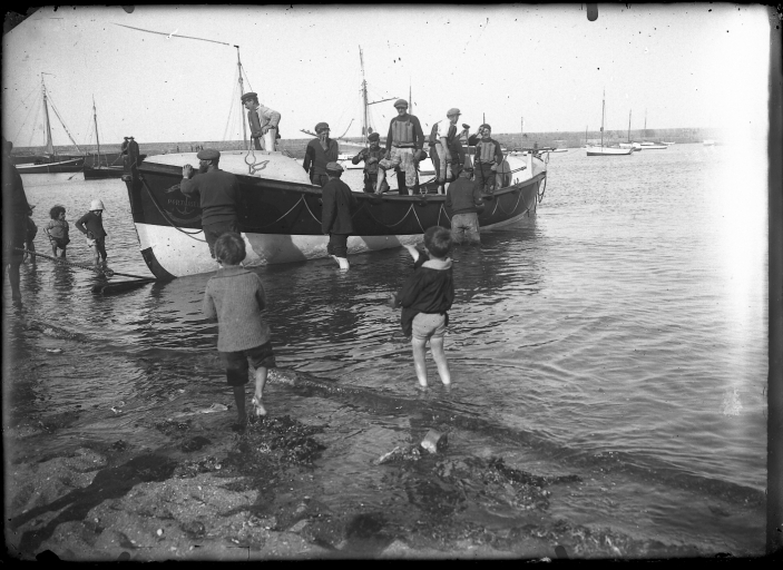 Mise à l'eau ou retour du canot de sauvetage à l'aviron du Portrieux, au 1er quart du 20ème siècle (AD 22, Barat)Immatriculation
