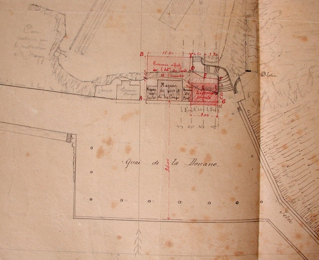 Plan du quai de la Douane en 1897 avec les aménagements en cours : bureau du port et logement à construire (AD 22)Immatriculation