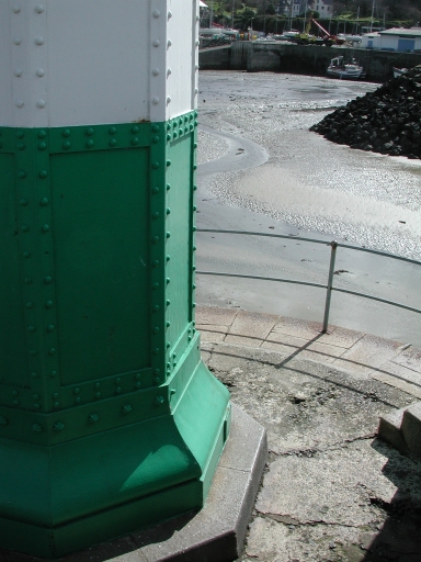 Vue de la base du fanal sur son socle : remarquer les boulons rivetésImmatriculation