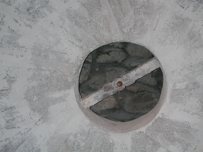 Détail de la meule courante : l'anille et le pointeau qui reçoit le fer d'entraînement de la meuleImmatriculation