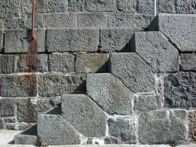 Les escaliers du quai : remarquer leur appareil en pierre hexagonales, avec les marques des tacheronsImmatriculation