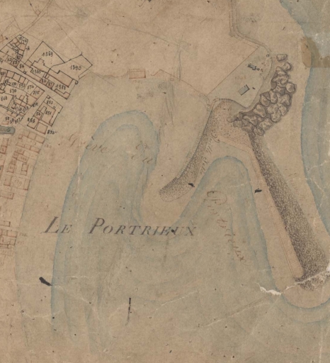 Extrait du tableau d'assemblage du cadastre de 1822 : la grève de Portrieux et la vieille jetée (AD 22)Immatriculation