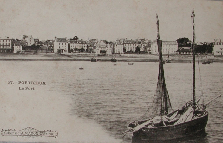 Chaloupes de pêche au premier plan échouées au Portrieux : remarquer la 1ère chaloupe au cul rond (AD 22)Immatriculation