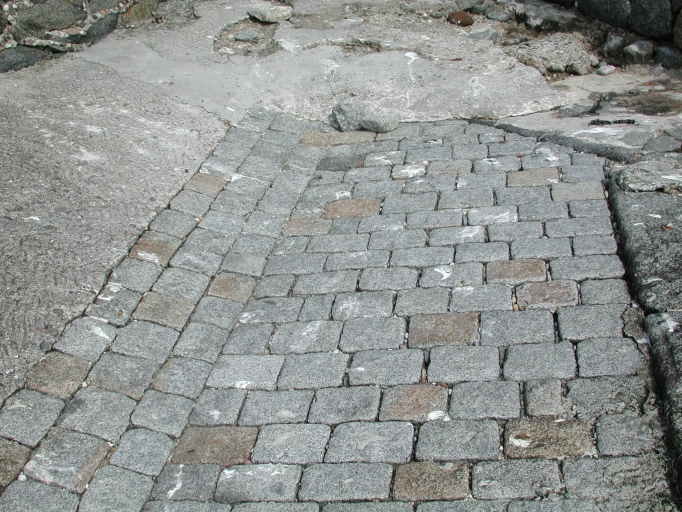 Vue de détail du dallage entre le muret et le phareImmatriculation