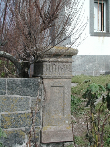 Détail du pilastre sculpté en bout d'un muretImmatriculation