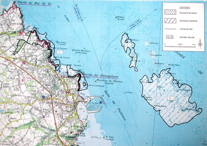 Carte des espaces littoraux remarquables sur la commune de Saint-Quay-Portrieux (DDE 22, DIREN Bretagne)Immatriculation