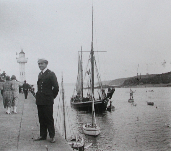 Un officier de l'escadre militaire en escale au Portrieux, devant un dundee, 1er quart 20ème siècle (AD 22, Fonds Vallée)Immatriculation