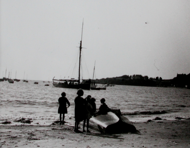Sloop avec mât de flèche devant la plage du Portrieux, 1er quart 20ème siècle (AD 22, Fonds Vallée)Immatriculation