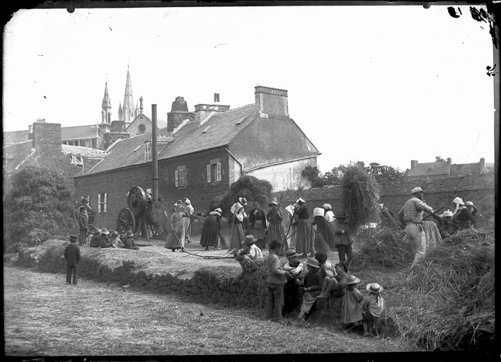 Battage près de l'église de Saint-Quay, début 20ème siècle (AD 22, Fonds Joël Jouas Poutrel, Barat)Immatriculation