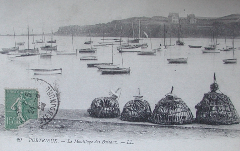 Casiers rond de pêche aux crustacés sur la jetée du Portrieux, début 20ème siècle (collection particulière)Immatriculation