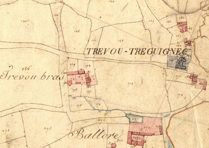 Trévou-Tréguignec, le bourg. Extrait du cadastre de 1819 (AD 22)Immatriculation