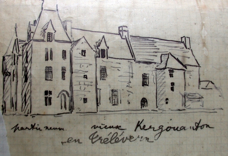 Vue générale des élévations postérieures du manoir de Kergouanton, croquis du vicomte Henri Frotier de La Messelière, 1ère moitié du 20ème siècle (AD 22)Immatriculation