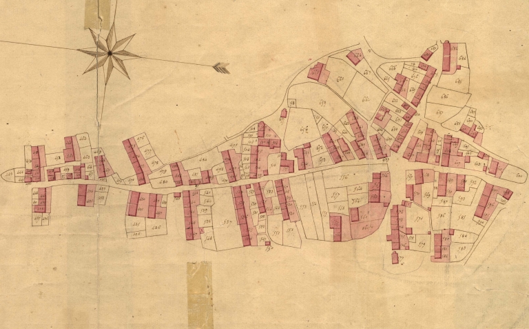 Extrait du cadastre de 1827, section A, feuille unique, développement (AD 22)Immatriculation