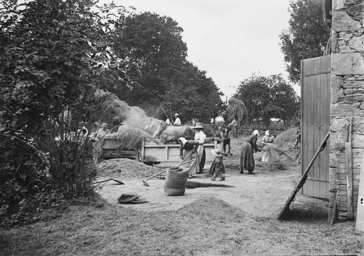 Créhen, moissons vers la fin du 19ème siècle, scène de battage, par Alain Raizon du Cleuziou (coll. Raison du Cleuziou, AD 22)Immatriculation