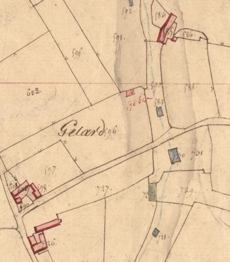 Routoirs à lin au lieu-dit Gélard d'après le cadastre de 1832 (AD 22)Immatriculation