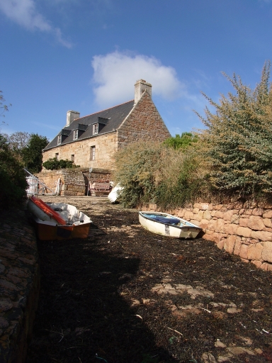 Bréhat, le bourg. Maison de corsaire vue depuis l'estranImmatriculation