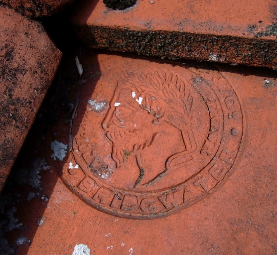Vue détaillée d'une tuile à double rouleau en provenance du Sommerset en Grande-Bretagne : inscription et portrait de l'empereur Napoléon IIIImmatriculation