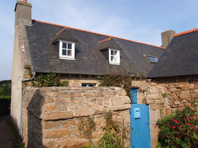Maisons, alignement de trois logis, Kerguereva (île de Bréhat),