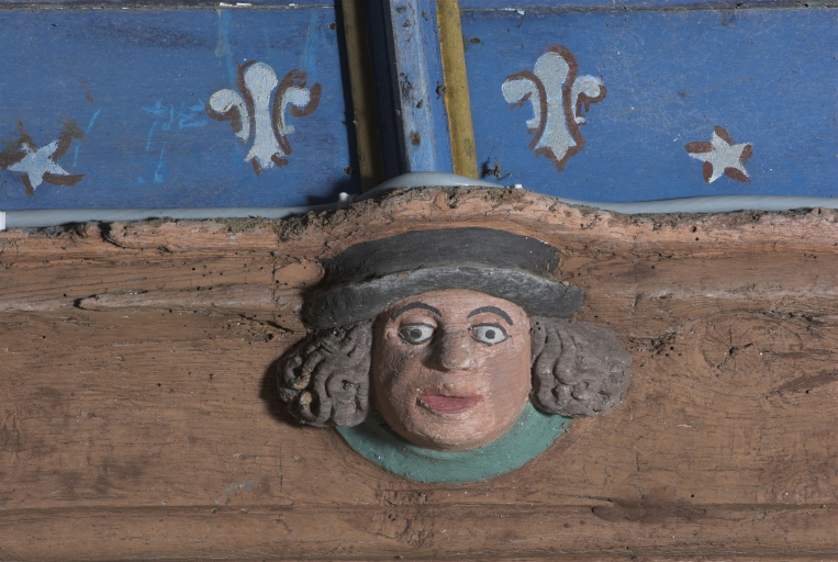 Nef, sablière sud : détail sculptéImmatriculation
