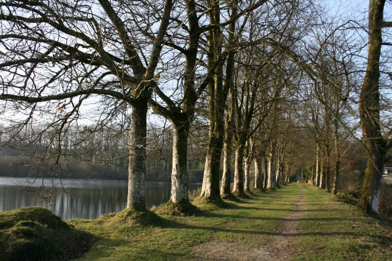 Etang et chaussée bordée d'arbresImmatriculation