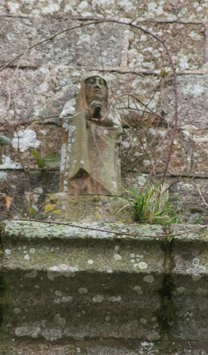 Eglise, façade ouest, partie supérieure : statue de la Vierge en prière provenant d'un calvaireImmatriculation