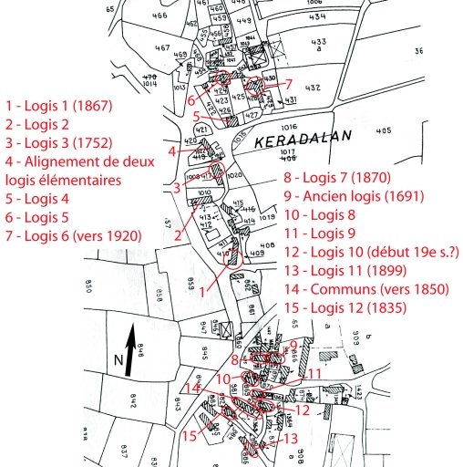 Plan-masse (d'après le cadastre de 1993) et localisation des éléments repérésImmatriculation