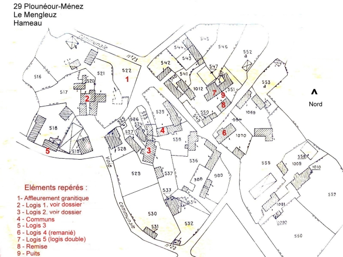 Localisation des éléments repérés (fonds : cadastre de 1993)Immatriculation
