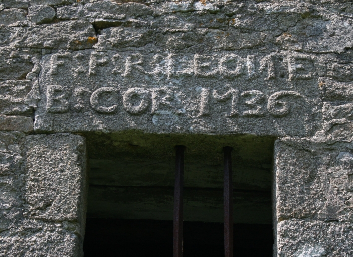 Logis 1, avancée sud-est, détail du linteauImmatriculation